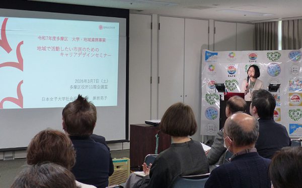 地域活動団体の支援やマッチング、居場所づくりなどの活動を行う、多摩区ソーシャルデザインセンター(以下、多摩SDC)が毎年開催している活動報告会が、3月7日に多摩区役所で開催されました。今回は、互いの地域活動の状況を把握し、地域課題の解決・周知につなげる取り組みとして、多摩区・3大学(専修大学・明治大学・日本女子大学)連携協議会による大学・地域連携事業の活動報告会との合同開催となりました。
